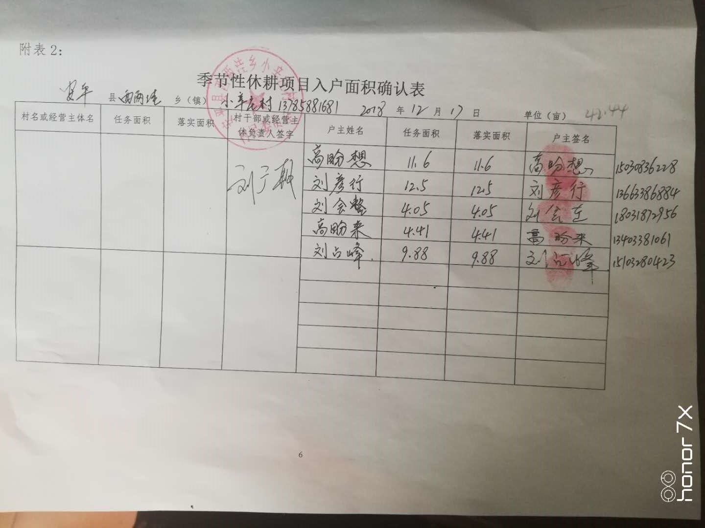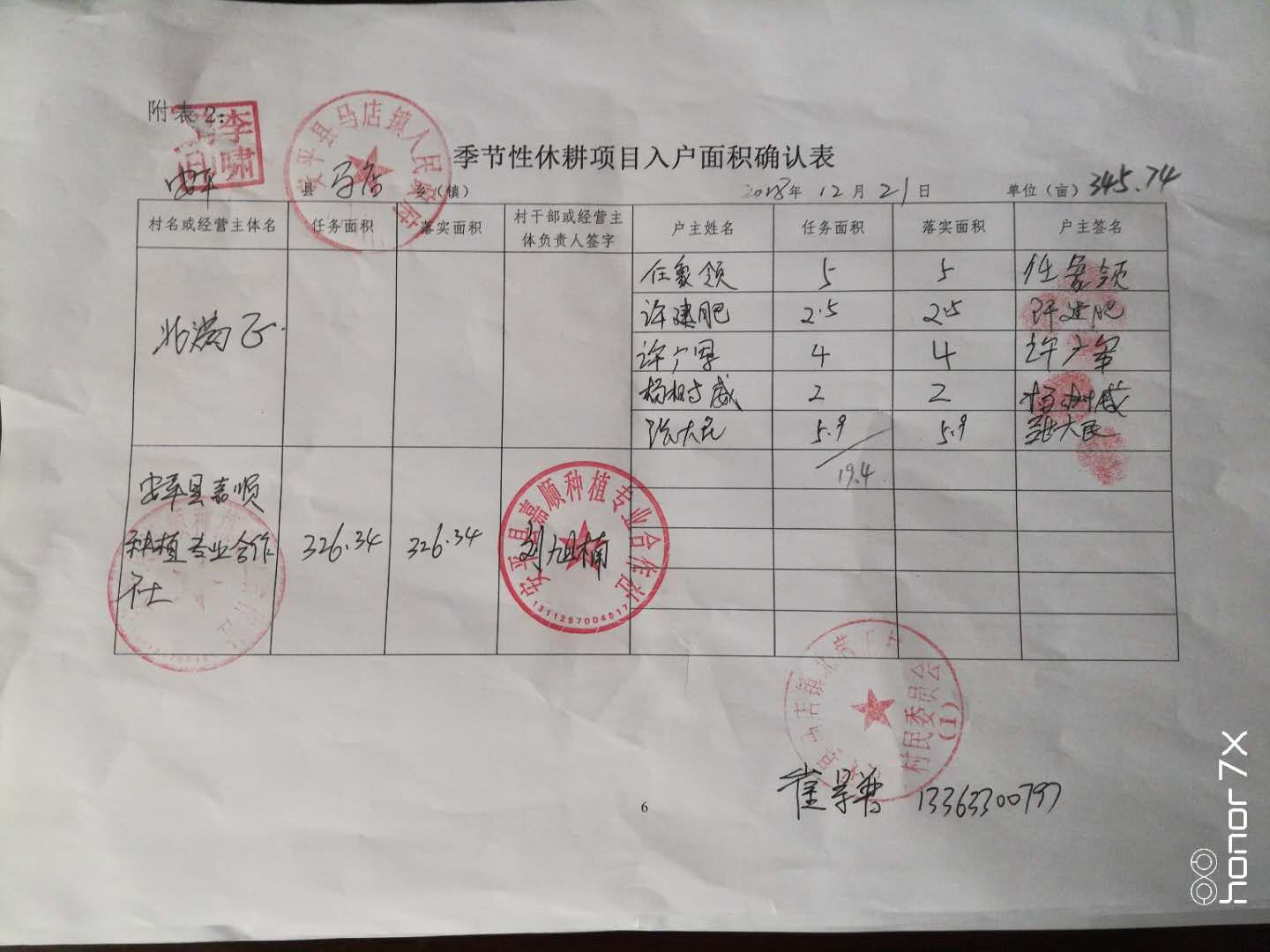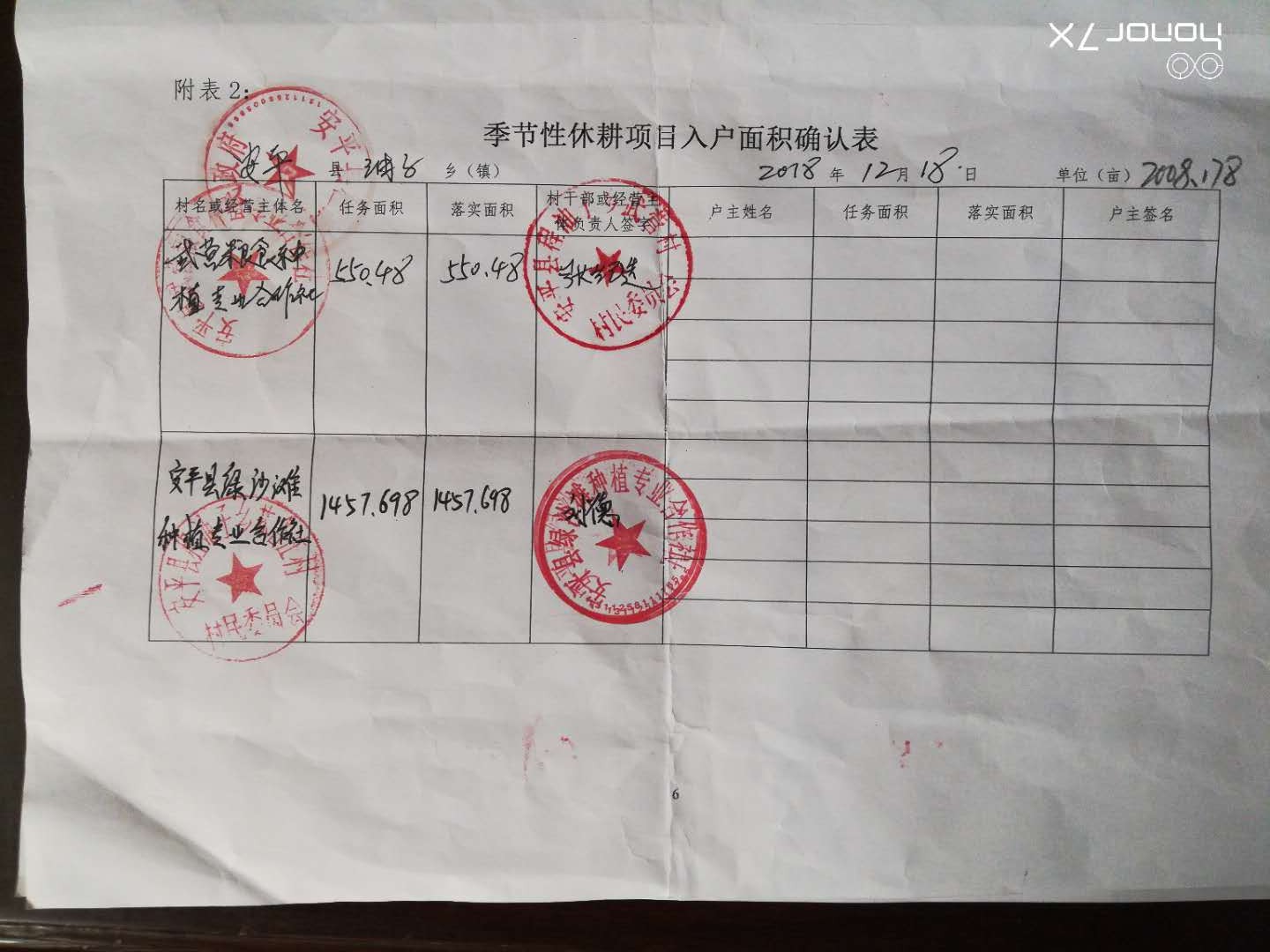 2018年度安平县季节性休耕项目任务面积13.3万亩,涉及8个乡镇,按照《安平县2018年度季节性休耕项目验收办法》要求,验收小组对马店镇、油子乡、大子文镇、两洼乡、东黄城镇五个乡镇进行了抽查,验收。验收小组首先听取了项目乡镇主管领导的汇报,查看了项目档案,并按照打分标准进行打分。现场验收采取入户确认、田间实地勘察的方法,每个乡镇随机抽查1-2个村,每个村随机查1-2个经营主体或五户,由乡镇人员、村负责人、经营主体法人 (户主)共同核查落实面积,填写《季节性休耕项目入户面积确认表》,乡镇、村委会、经营主体(户主)确认,签字盖章。