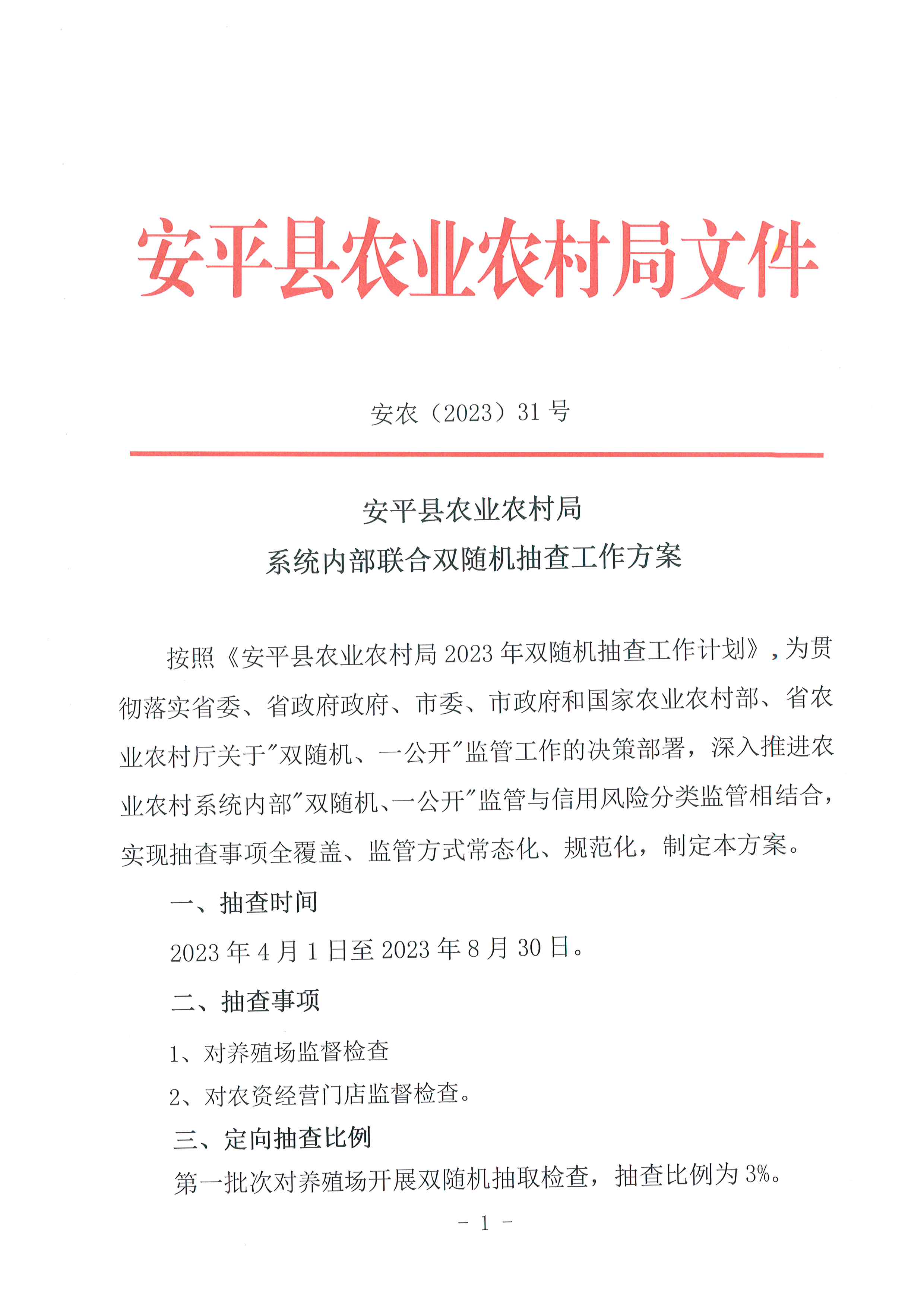 安平县农业农村局系统内部联合双随机