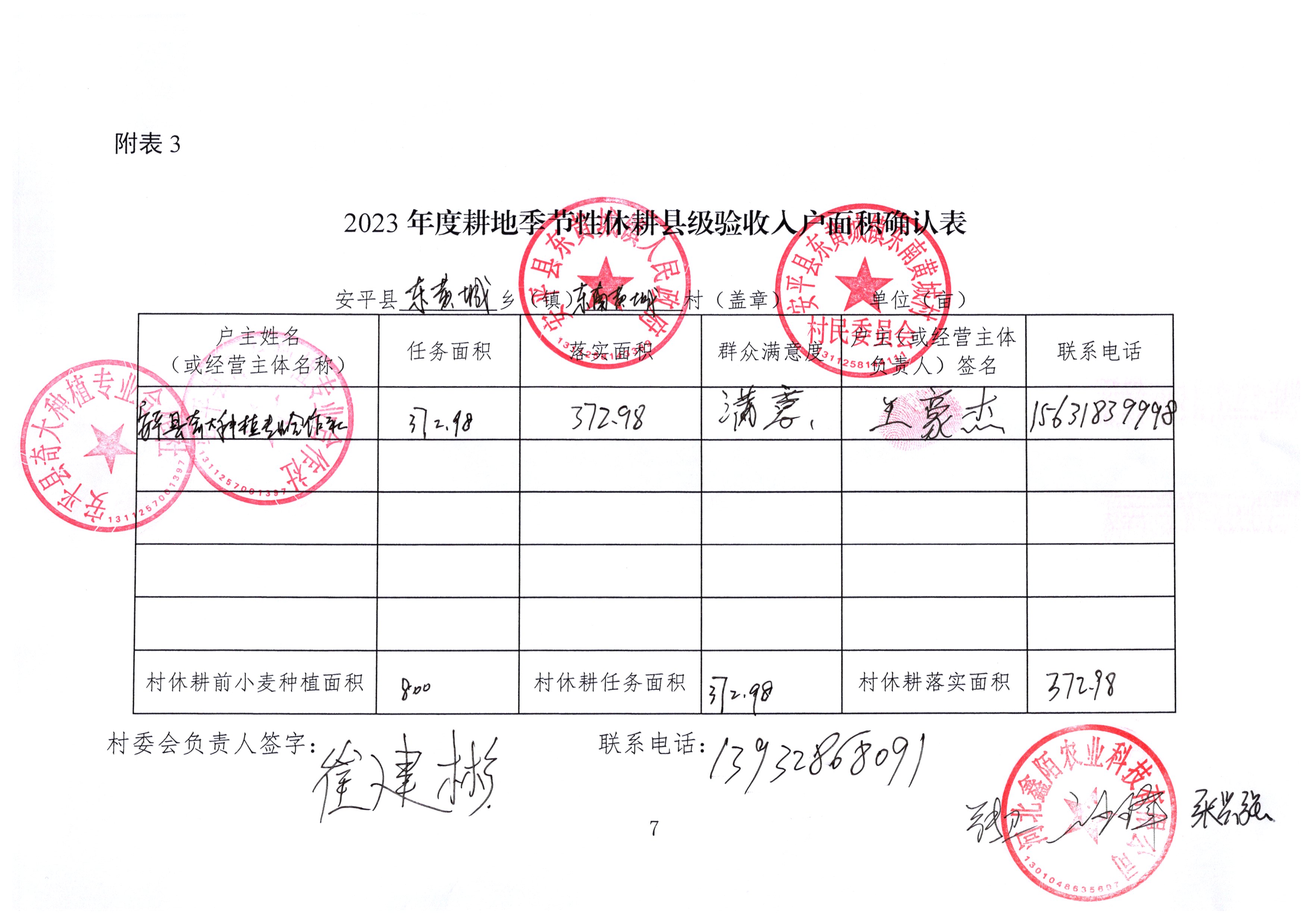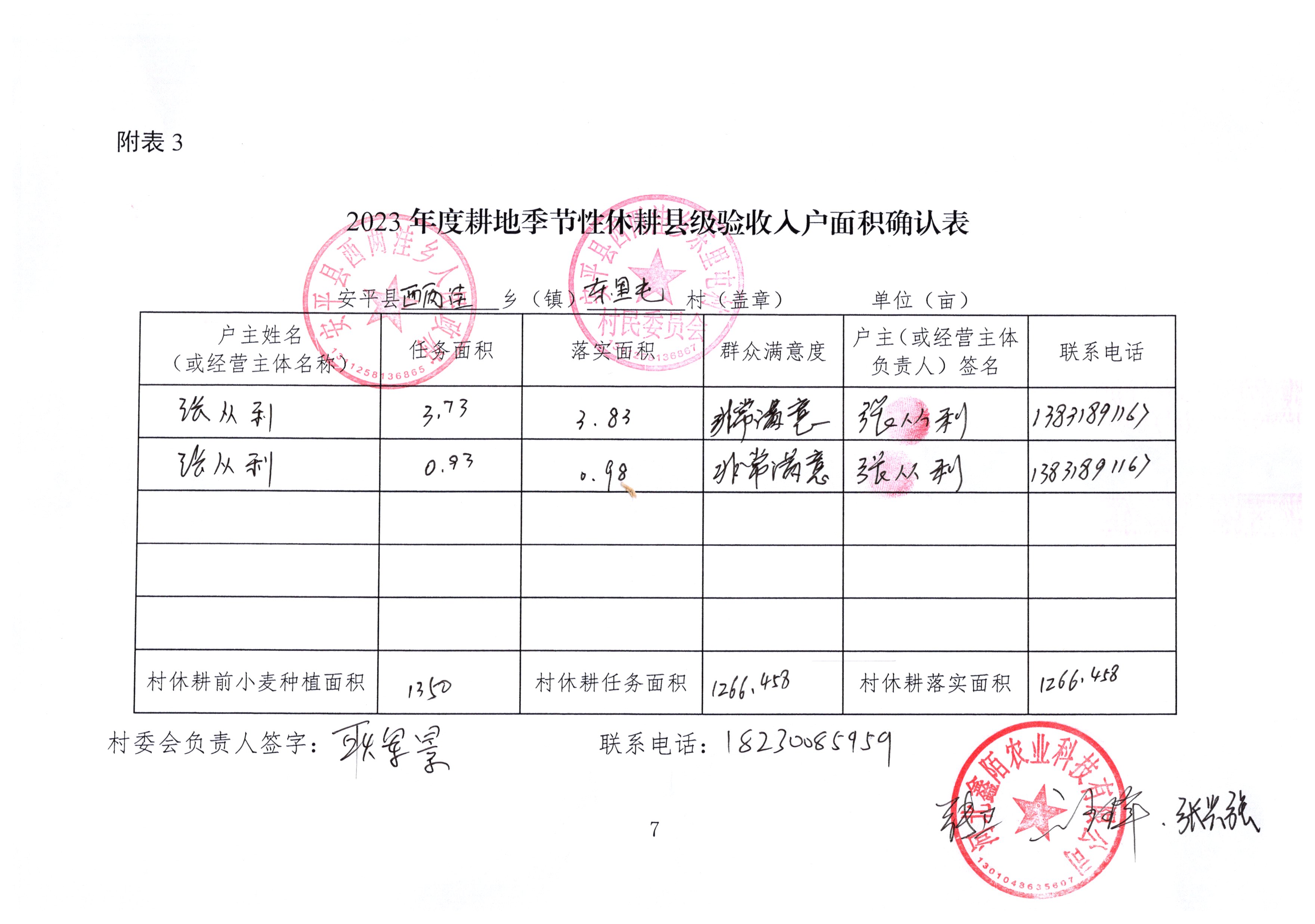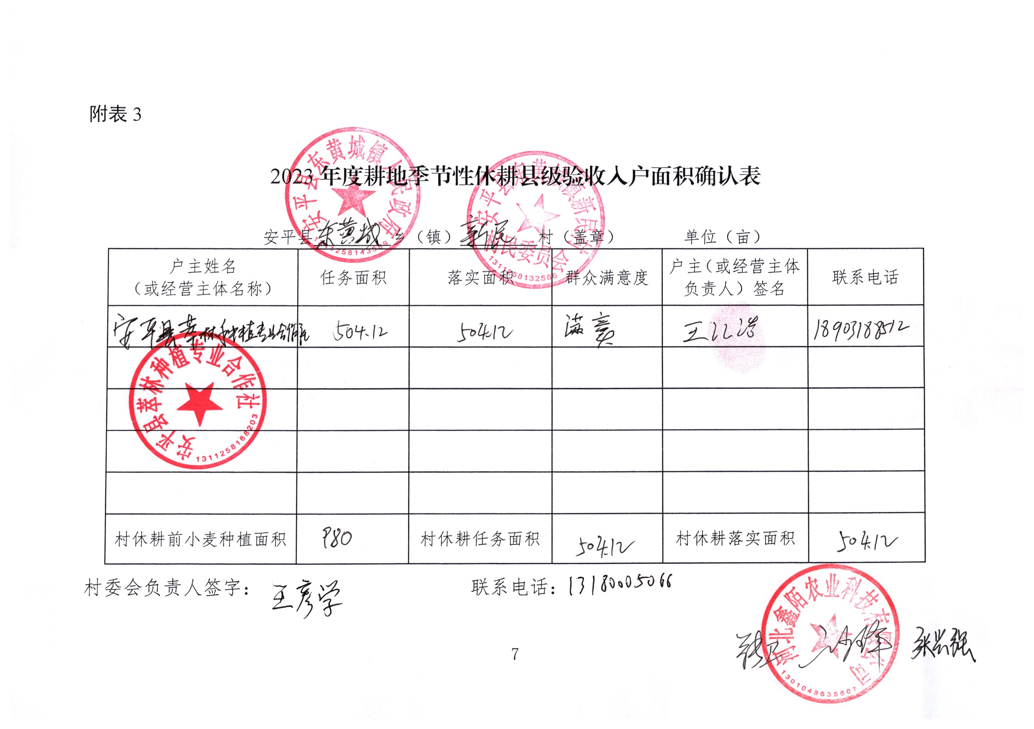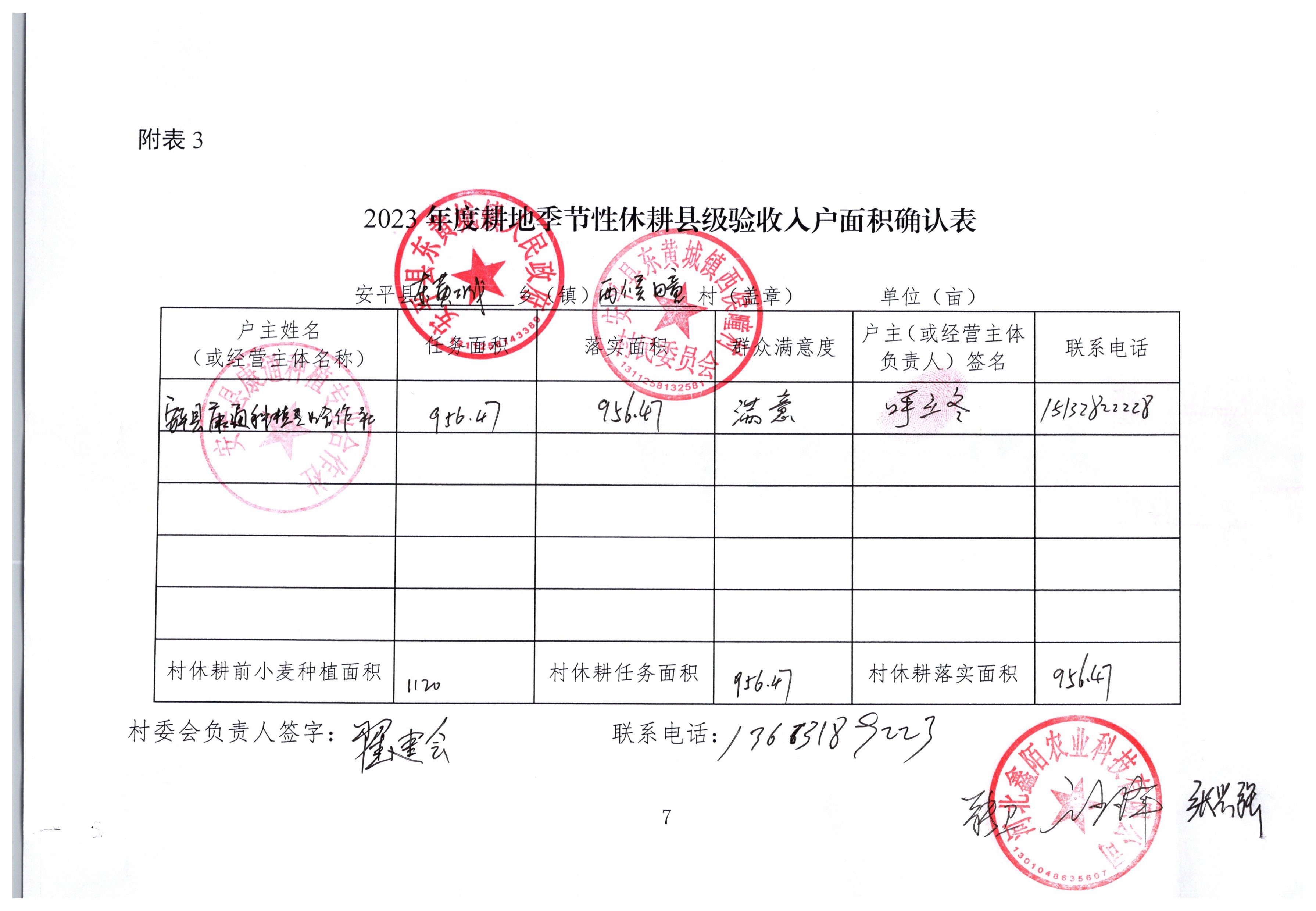 安平县2023年度耕地季节性休耕项目县级验收公示