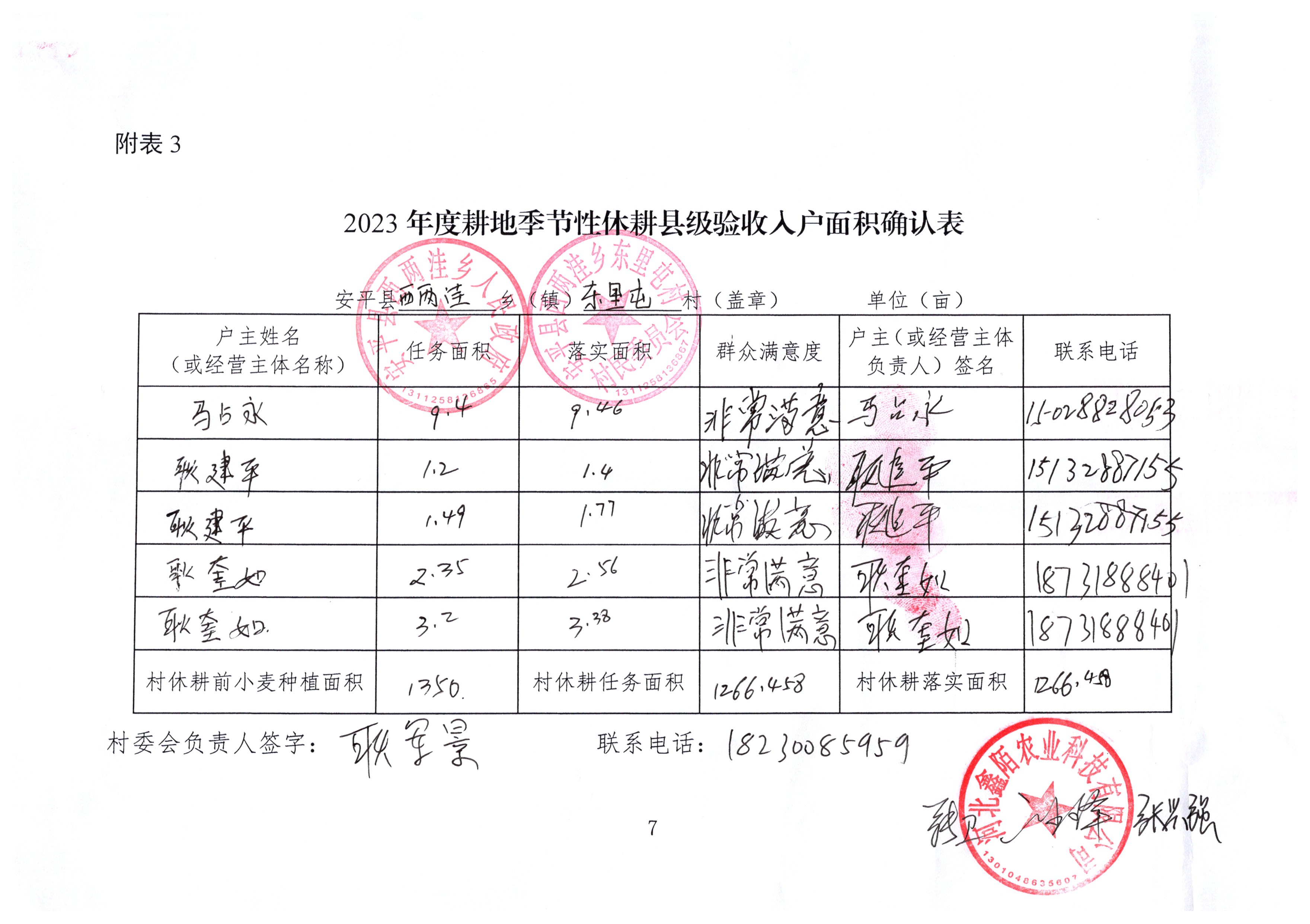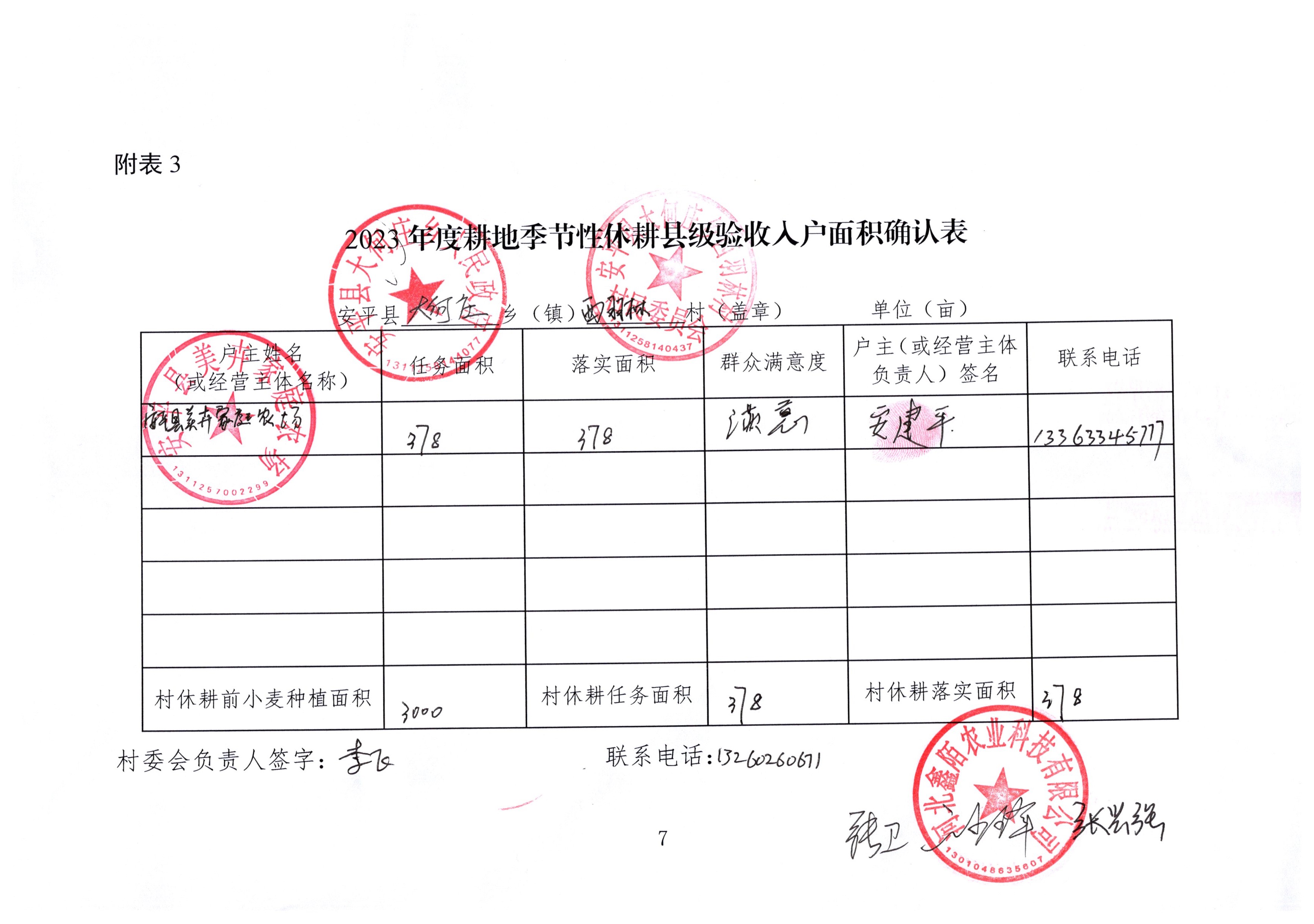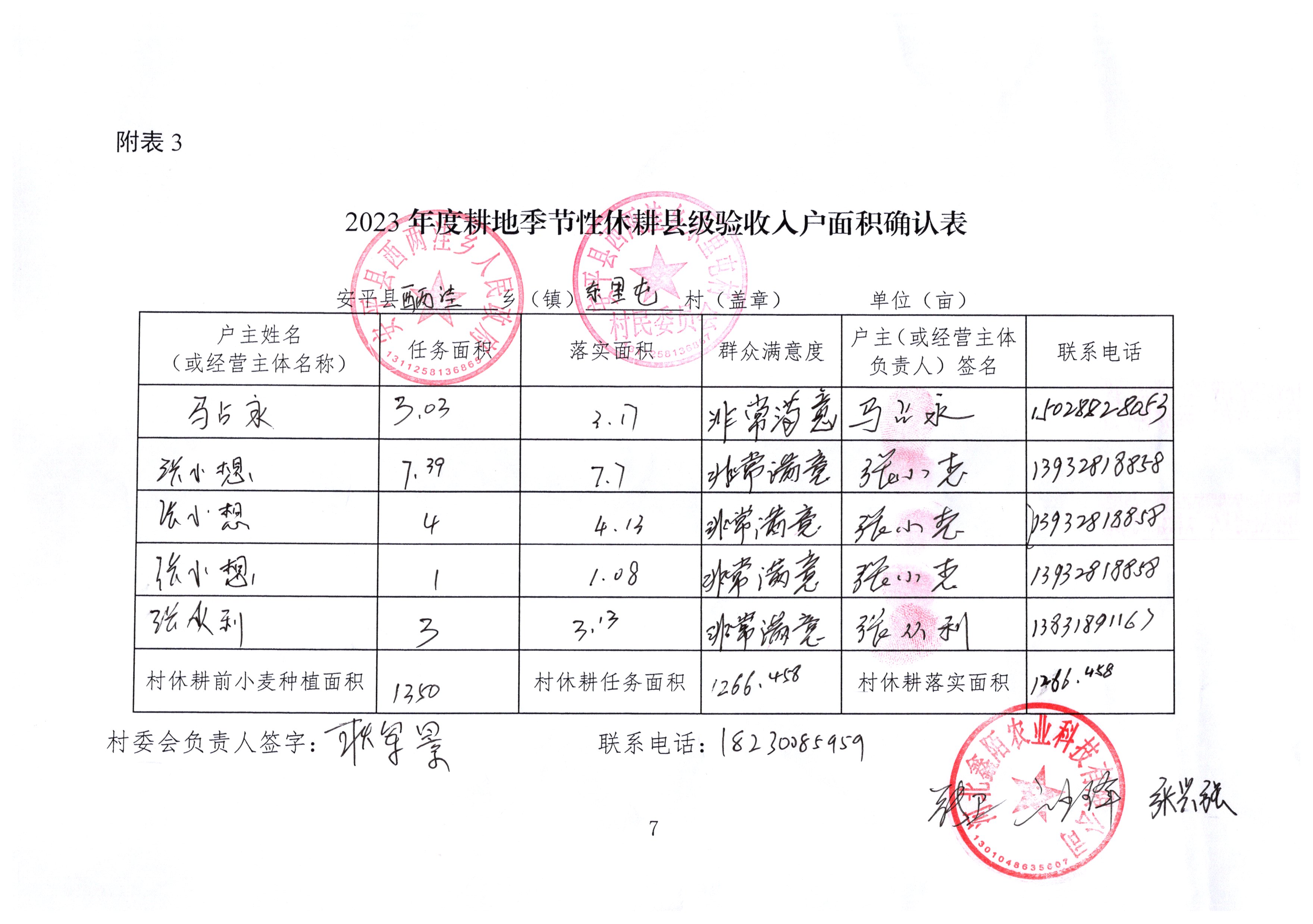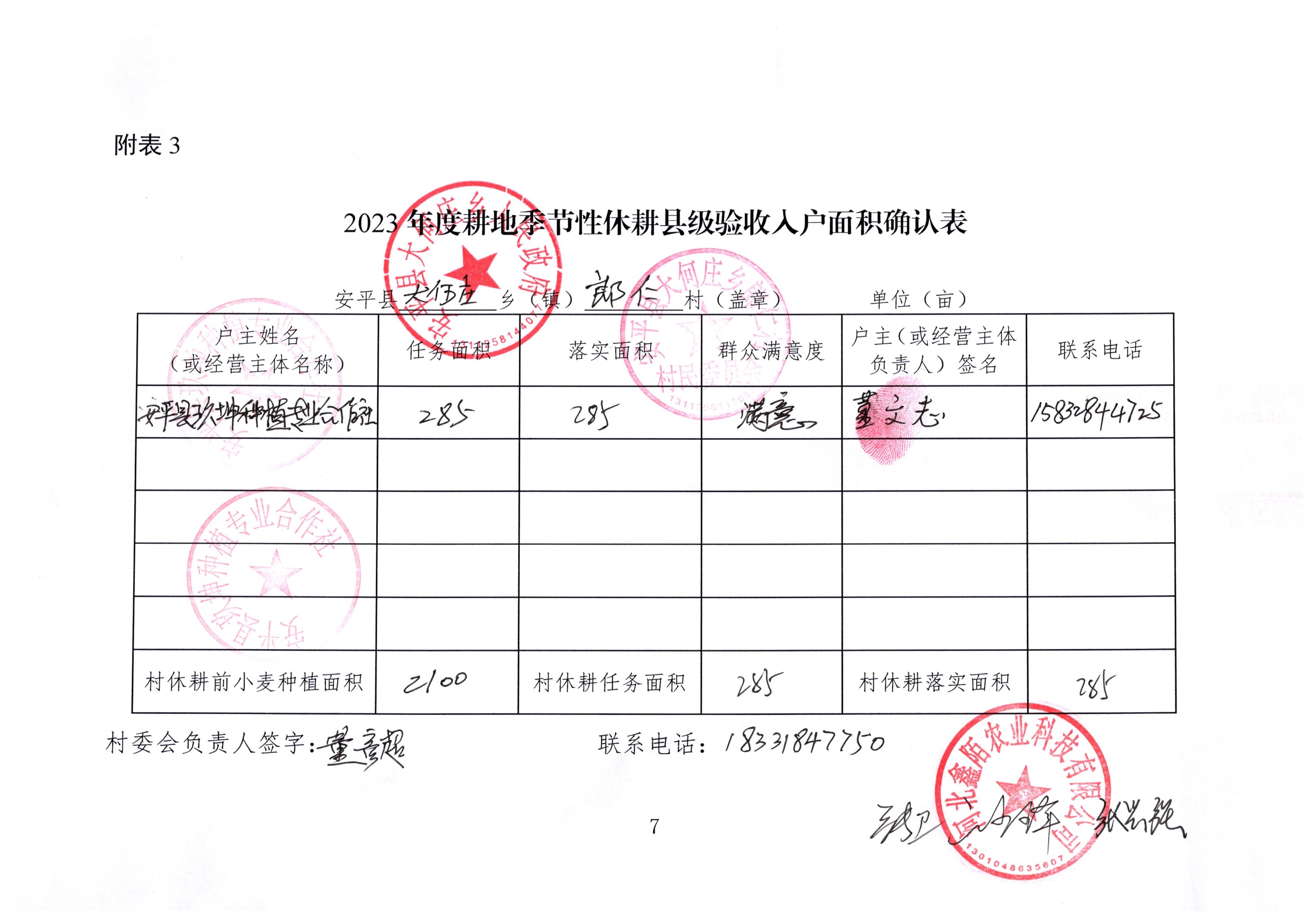 安平县2023年度耕地季节性休耕项目县级验收公示