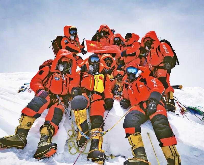 精确测量珠穆朗玛峰的高程具有重要科学价值,是国家测绘技术水平和能力的综合体现。2020珠峰高程测量登山队最终确定珠穆朗玛峰的最新高程为8848.86米。图为2020年5月27日,登山队在珠穆朗玛峰顶合影留念。新华社特约记者 扎西次仁/摄