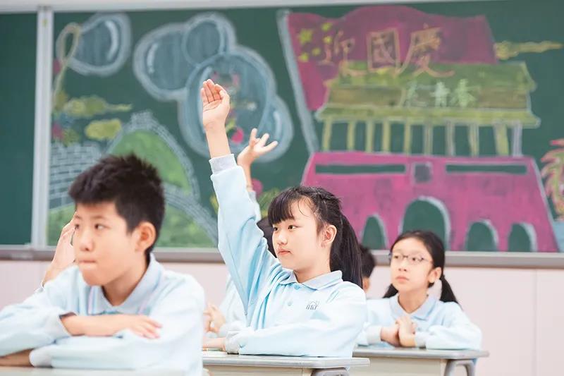 澳门中小学学生使用的教材《品德与公民》中有丰富的关于国情、国旗、国歌的内容,学生们可以从中学到很多关于祖国的知识,培养对祖国和澳门的感情。图为2019年11月25日,澳门濠江中学附属英才学校的学生在课堂上举手回答老师提问。新华社记者 张金加/摄